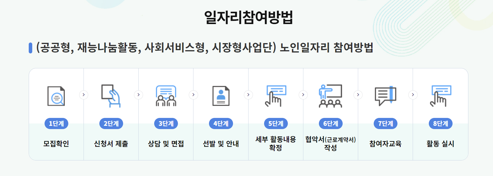 ▶ 온라인 신청: 노인일자리 여기, 복지로, 정부 24 누리집을 통해 신청