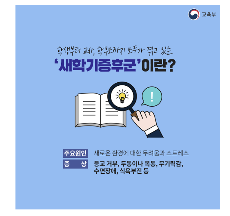 ※ 새 학기 증후군의 주요 원인으로는 새로운 환경에 대한 두려움과 스트레스등이랍니다.